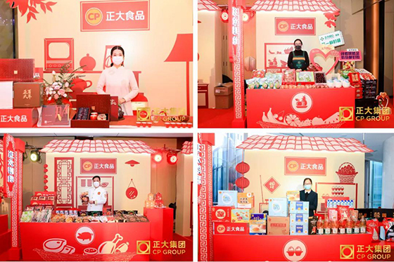 值得一提的是,今年大会设置了以“正滋味 过大年”为主题的正大新吉市,展示了正大面点、水果、茶叶、方便菜、鸡蛋、鸡肉、水产及猪肉等产品,营造了浓浓的过年逛集市的氛围,全体员工在线开启云逛街。