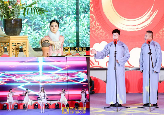 年会在一幅精彩绝伦的《正·当时 大·气象》沙画表演中拉开序幕。《沙画》描绘了正大集团历经百年的蓬勃发展,从象征着“正大庄种子行”的一粒种子,发展成为在中国区涉足农牧食品、批发零售、制药、地产、工业、金融、供应链、教育、传媒等行业和领域的多元化集团公司;以及从1979年改革开放后进入中国大陆,为中国人民打造了家喻户晓的正大饲料、正大食品、卜蜂莲花、正大广场及正大综艺等知名品牌的发展轨迹,再到2020年乔迁入驻北京CBD正大中心等里程碑式的发展故事。