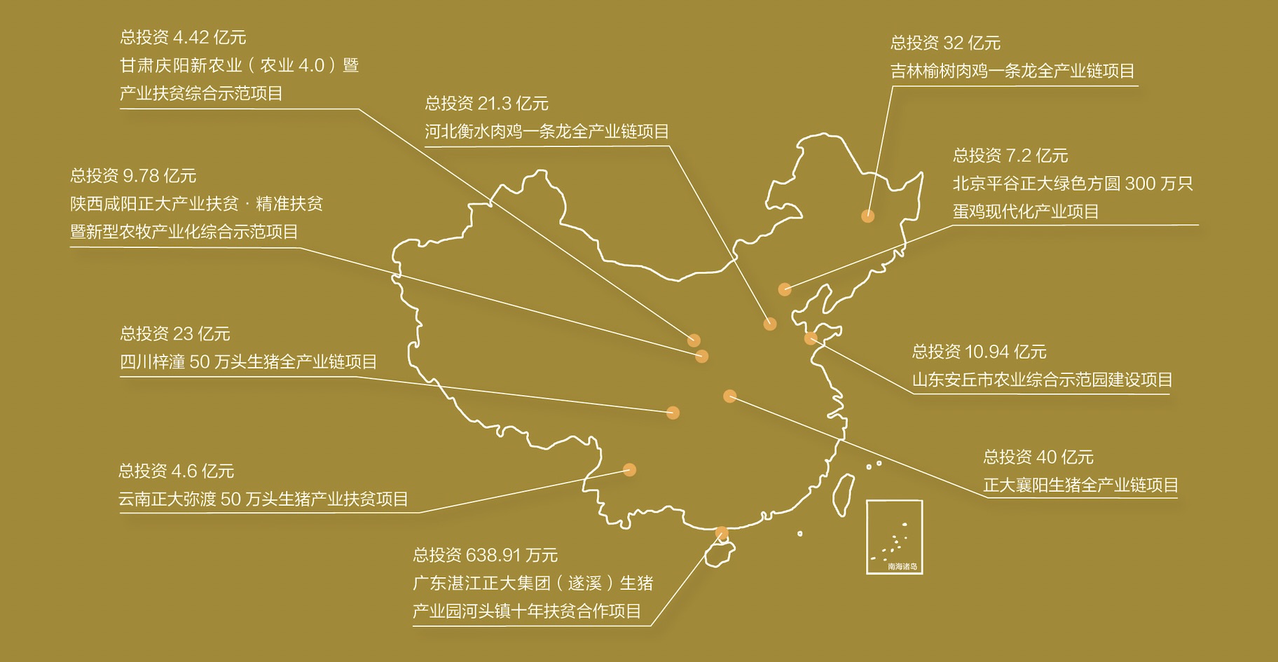 产业扶贫是正大集团的一大特色,为广大农民和贫困户带来了财富和幸福,连续多年被中国商务部中国外商投资企业协会授予履行社会责任优秀案例荣誉,并入选国务院扶贫办企业扶贫案例50佳。据不完全统计,各类产业扶贫项目总投资额已超过245亿元人民币。